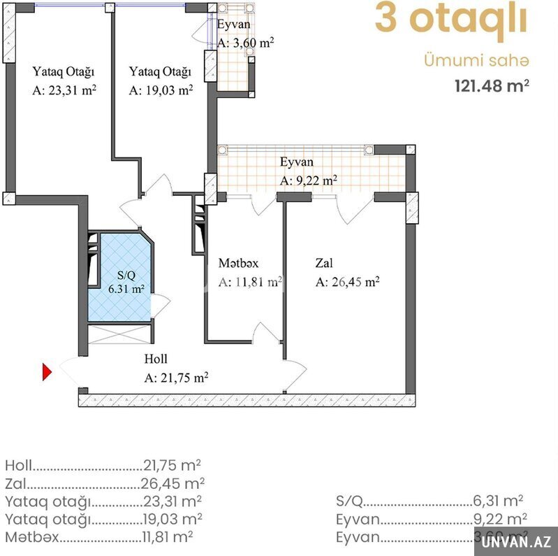 Sahə 121 m²