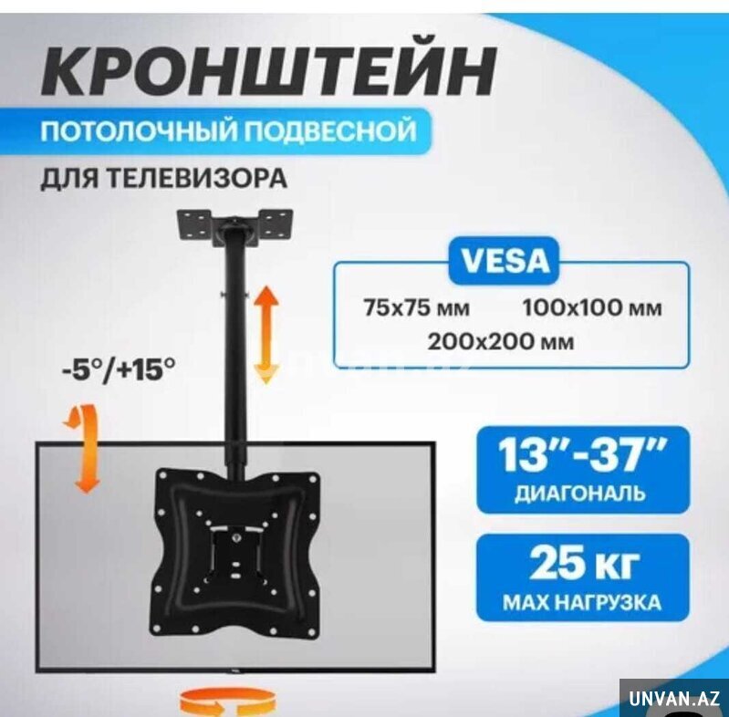 Bütün növ televizorlar üçün potolok divar asılqanlarının Kronşteyinlərinin satışı və Səliqəli dəqiq ustanovkası bütün divarlarda. Yalnız original və möhkəm asılqanlar. Kronşteyinlər televizorun çəkisindən ekran ölçüsündən və kronşteyinlərin növündən asılı olaraq müxtəlif qiymətlərədir. Ətraflı zəng və yaxud votçap.