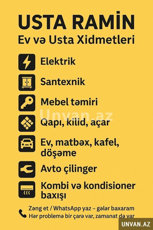 Salam Allahın mənə verdiyi qabiliyyətlə mənzilinizdə və ya məlum yerlərdə ehtiyac duyduğunuz təmir və ya interyer dizayn dəyişikliyi və ya hər hansısa problemlərinin həllinə dair sizlərin və əzizlərinizin məmnuniyyətindən şərəf duyaram.
