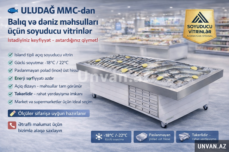 ULUDAĞ MMC sizə balıq və dəniz məhsullarının təravətini qoruyan, müasir və funksional island tipli açıq soyuducu vitrinləri təqdim edir.