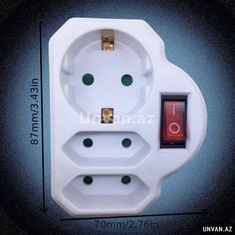 Three-Way Rotating Socket with Switch, 16A 250V | Трехпозиционная поворотная розетка с выключателем, 16 А 250 В