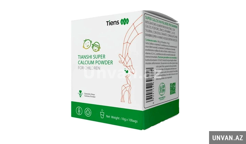 Tiens Uşaqlar üçün Super Kalsium tozu, böyümə və inkişaf dövründə olan uşaqların fiziki və zehni inkişafını dəstəkləmək üçün hazırlanmış təbii və bioloji aktiv qida əlavəsidir. Məhsul ən müasir enzimləşmə texnologiyası ilə gənc buzovların onurğa sümüklərindən əldə olunan kalsiumla zənginləşdirilmişdir.