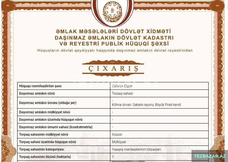 • Qaz-işıq-internet xətləri və artezian torpağın yanındadır