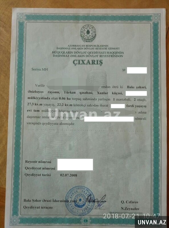 Ünvan: Türkan . Xanlar küçəsi