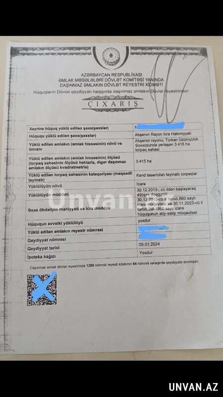 Elan nömrəsi: 639142 Turkan ges. 305 sot