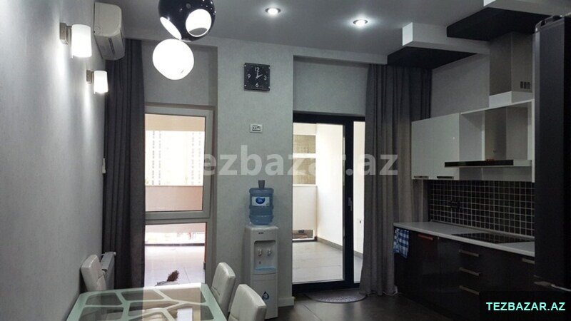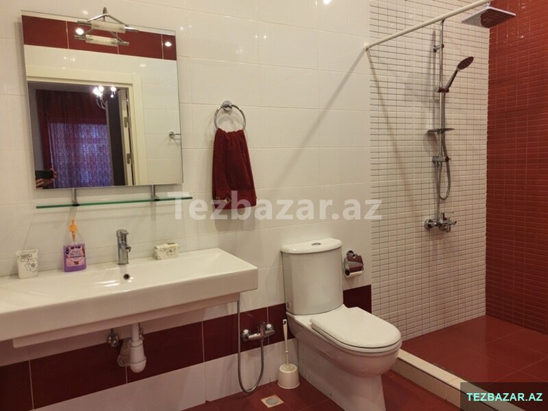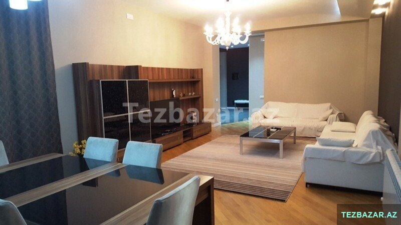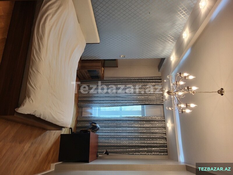 A comfortable 4-room apartment with total area of 200 square meters is available for renting near the Aquapark on Rashid Behbutov Street. 3 bedrooms, 2 bathrooms with Jacuzzi and a shower with expensive repair in modern style. The kitchen is built-in and fully equipped. Washing machine and dishwasher. Individual heating system. The rooms are very light and wide. The apartment is with panoramic windows and a large balcony of 17 square meters. Heated floors. Very comfortable layout. There is the sports complex "Aqua Park" near the house, which includes a gym, a restaurant, a sauna, a swimming pool, a beauty salon and a large supermarket that operates 24 hours a day. The building is guarded 24 hours a day. The apartment is located 5 minutes’ walk from the business center of the capital. The rental price is 2500 manat per month. The apartment is also rented on a daily basis 150 manat per day.