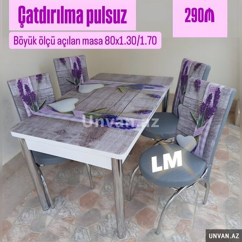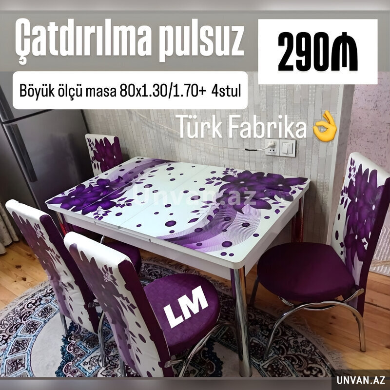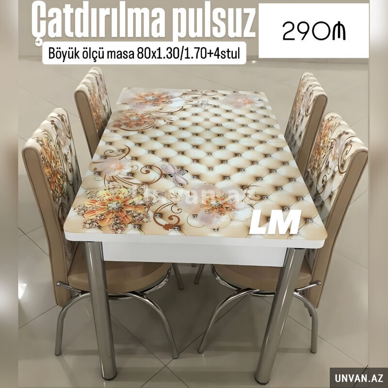 Mətbəx masa ( üstü şüşə) + 4 stull dəst