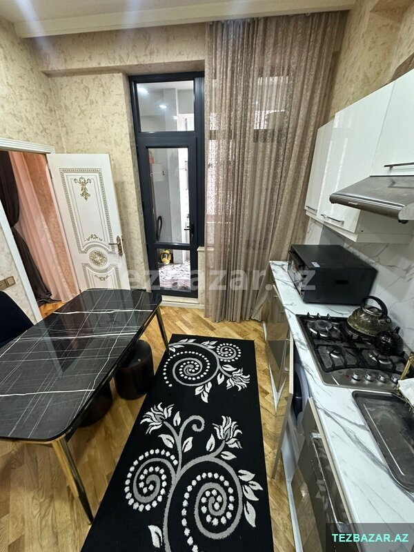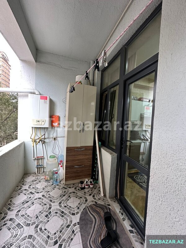 Mənzilin quraşdırılmış mətbəx mebeli, eyvanı, kombi sistemi, duş-kabinası və s var.