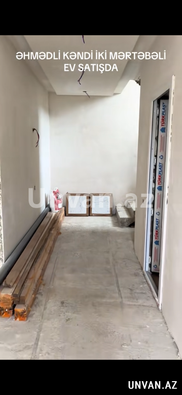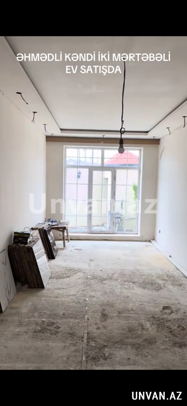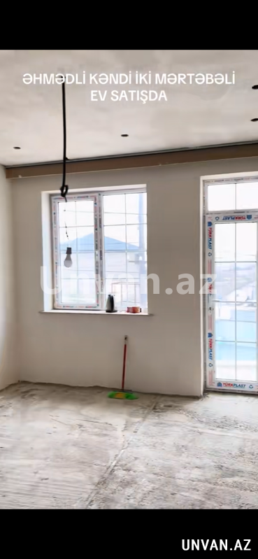 Elan nömrəsi: 643387Əhmədli kəndində yarımçıq iki mərtəbəkli ev satılır.Yol kənarıdır.Qoşa daşla tikilib.Dörd otaqdır.Hər mərtəbədə hamam-tualet var.Mərtəbə arası betondur.Yeri isti poldur.Aboya hazır vəziyyətdədir.Özünə tikmə evdir.Qiymətdə razılaşmaq olar.