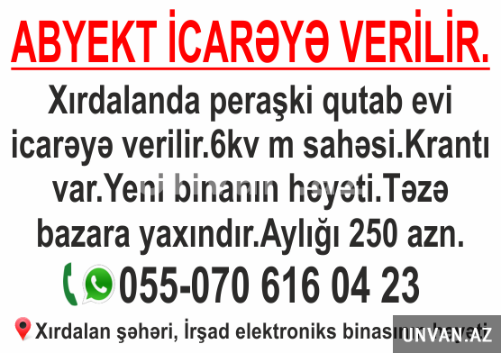 Xirdalanda peraşki qutab yeri icareye verikir. Qiymeti 200azn. Suyu var.