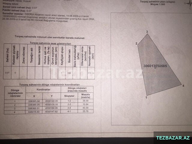 Xızı şəhəri, mərkəzdə, Cəfər Cabbarlının heykəlinin arxası, məsçidin yaxınlığında, Turqut Ozal küçəsində 7 sot torpaq sahəmi satıram. Torpaq sahəsinin təyinatı yaşayış məntəqələrinin torpağı, Çıxarışı və Texpasportu var.təzə hündür hasar çəkmişəm. öz torpağımdır, özüm satıram.çox münasib qiymətə.