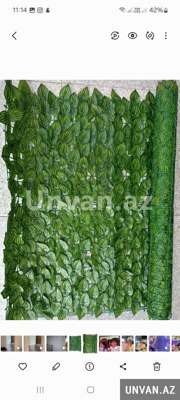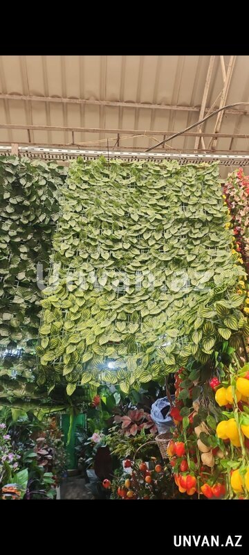 Yaşıl süni yarpaqlı dekorativ panel -örtüklər interyer və eksteryerdə istifadə olunur.