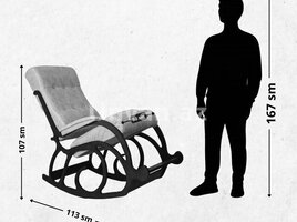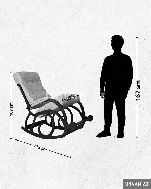 Ölçüləri: Hündürlüyü: 107sm, eni: 60sm, dərinlik: 113sm, Oturacağın ölçüləri: 50*55, söykənəcəyin ölçüləri: 50*70.