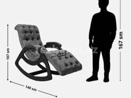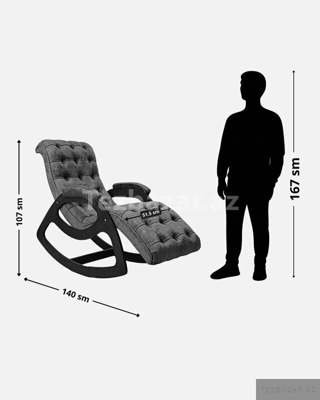 Ölçüləri: Hündürlüyü: 107sm, eni: 65sm, dərinlik: 135sm, Oturacağın ölçüləri: eni: 50sm, başqan ayağa uzunluğu 170sm.