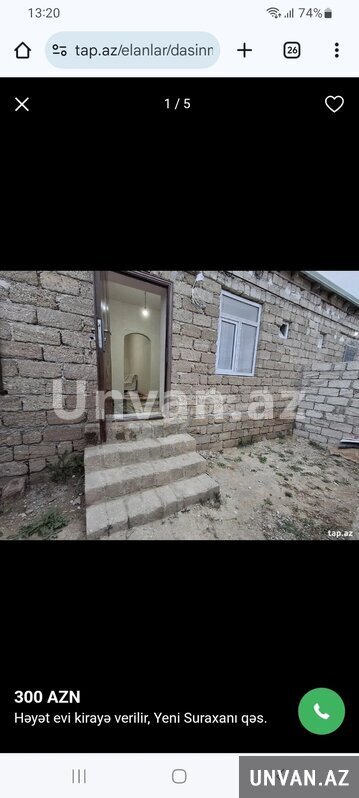 Elan nömrəsi: 642720KİRAYE EV VERİLİR..Yeni Suraxanida yerləşir..İki otaqli orta təmirli evdi..Əşyalari var evin..Kombi istiliyi var, interneti var, gir yaşa vəziyyətində hazir evdi..Təzə sakit məhlədədi həyət evi