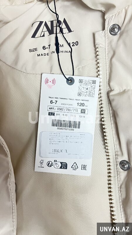 Turkiyenin Zara-sinnan sifarish vermishem, etiketi bele ustundedi, 6-7 yash, ushaq biraz kok oldugu ucun gelmedi.